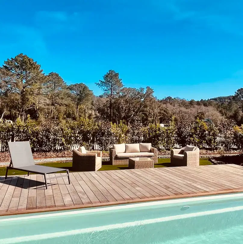 Entre terrasse en bois, piscine privée et jardin arboré, profitez d’un extérieur conçu pour savourer pleinement le soleil corse.